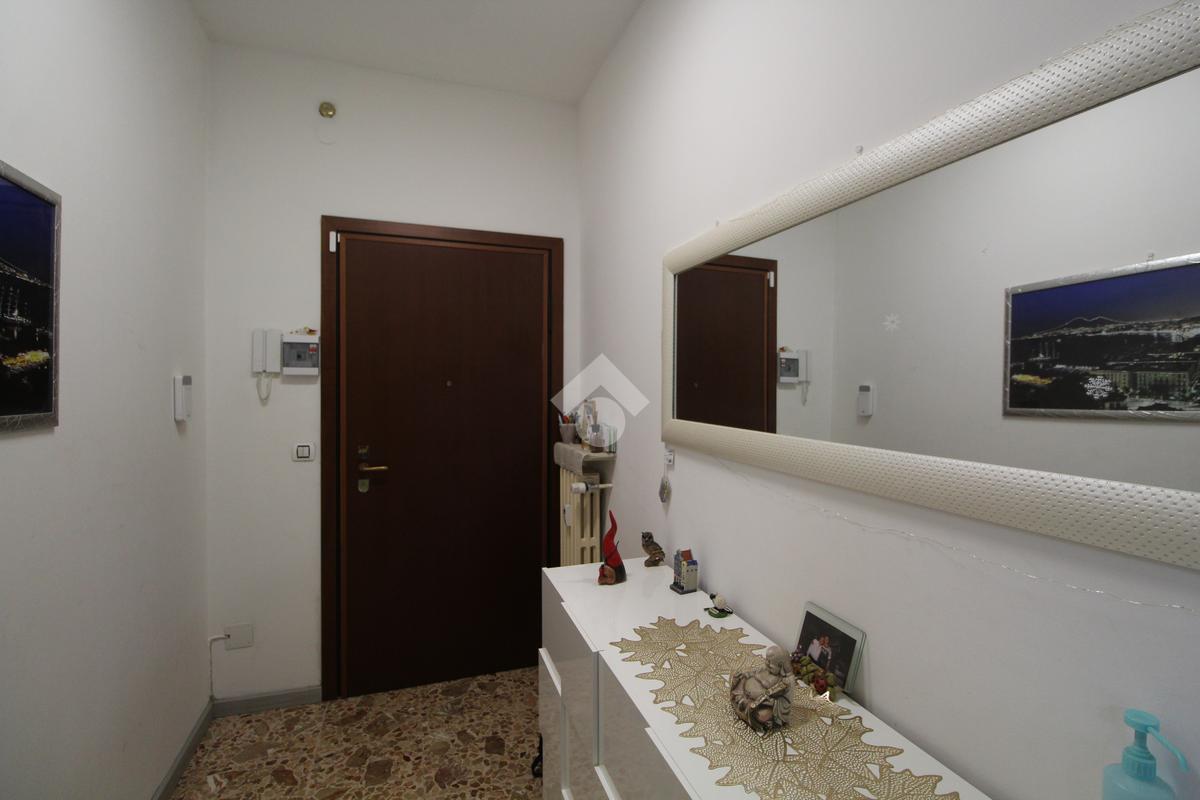 Salendo al primo piano arriviamo al nostro appartamento e aprendo la porta di ingresso, blindata, veniamo accolti da un ampio vano, ideale per attaccapanni e scarpiere.